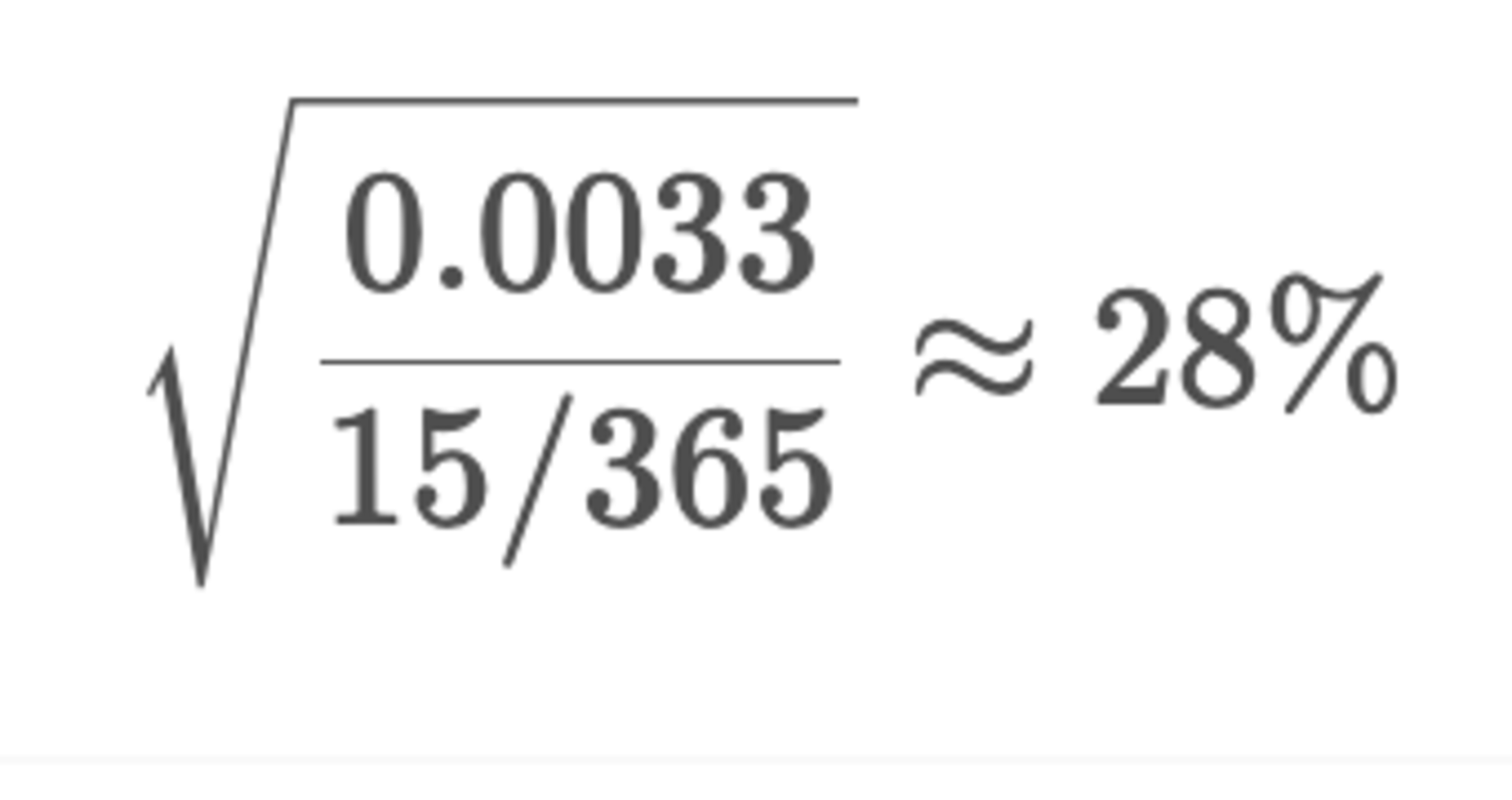 原因很简单:IV 只是把“未来这段时间的总 variance”,平均摊成一个年化的强度指标,方便报价和比较。