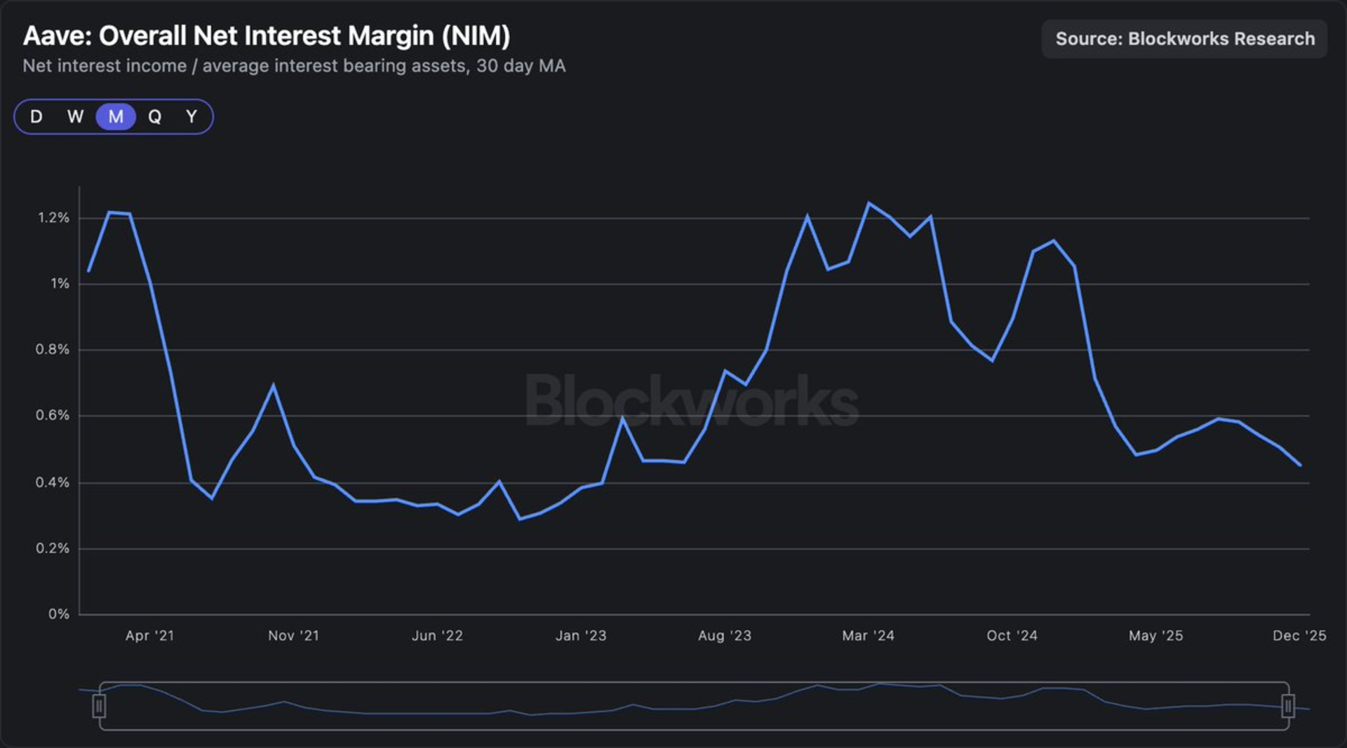 与传统金融对比时,DeFi 借贷协议在表面上似乎“低利润”,如果只看存款端。然而,这忽略了真正的护城河所在。