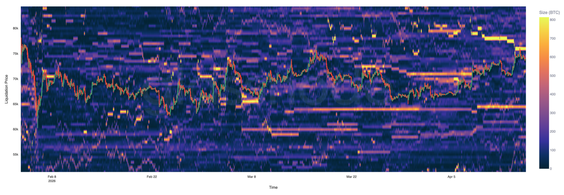 Hyperliquid 清算数据显示出一个紧密聚集且高度反应灵敏的永续合约市场,流动性集中在当前价格附近。作为单一平台视角,这反映了更具战术性的持仓,提供对短期杠杆动态的洞察,而非市场整体结构。
